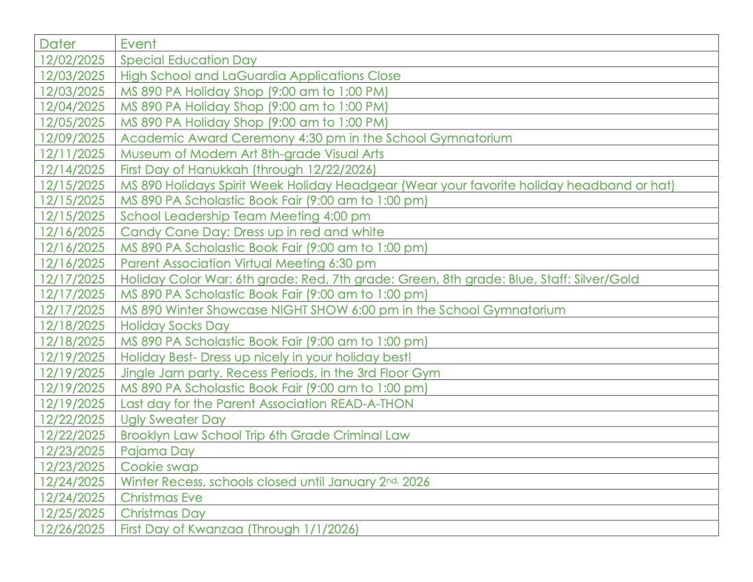 December 2025 School Calendar