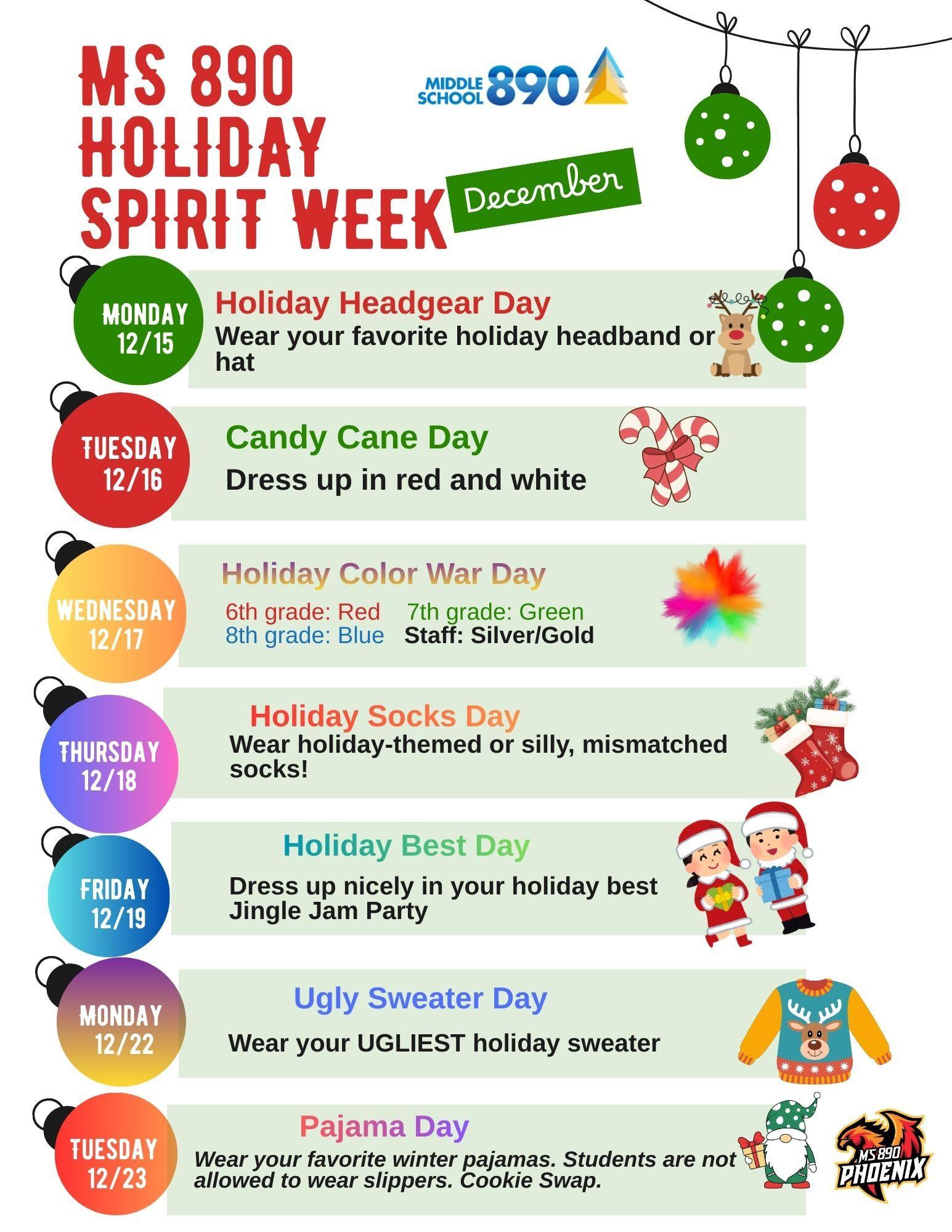 Middle School 890 Holiday Spirit Week